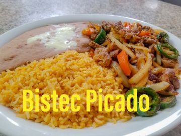 One of the best Authentic meals with your choice of Chicken or Steak cooked with our home made Colorado Sauce and Rice & Beans and Tortillas w/Nopal 2.00more.