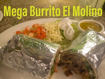 MOLINO BURRITO ...........................11.99 Burrito stuffed with, Chorizo, Eggs, and Ham.-Rice and Beans - Queso Dip.